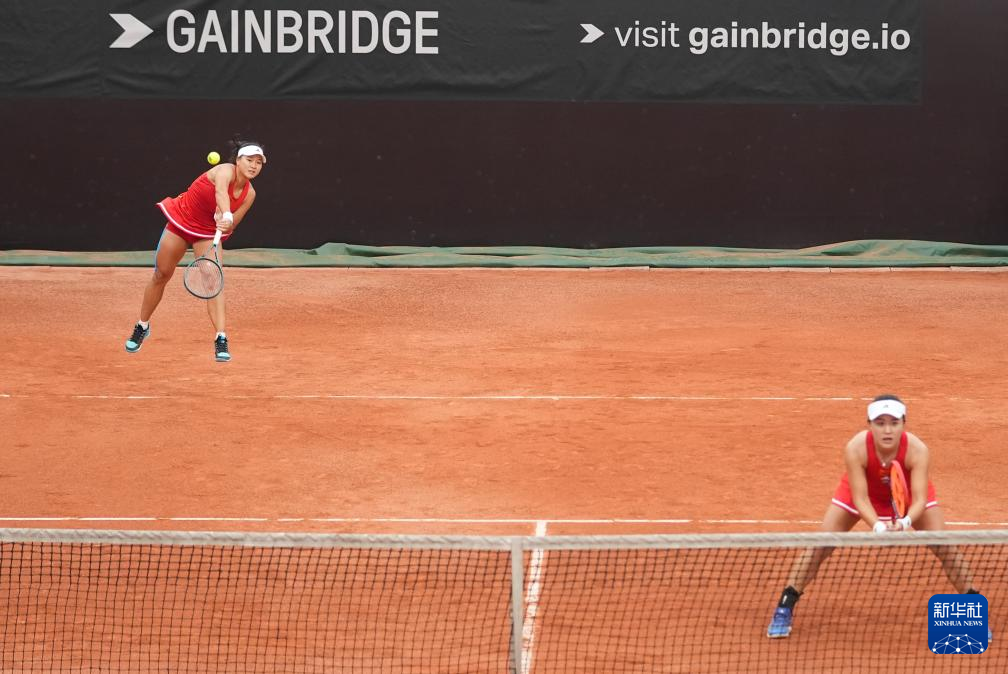 4月9日,中国队组合朱琳/郭涵煜(左)在双打比赛中。她们0比2不敌中国台北队组合詹皓晴/梁恩硕。新华社记者 薛宇舸 摄