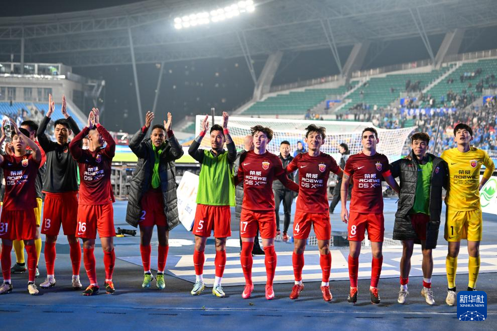 4月9日,上海海港队球员赛后向球迷致意。新华社发(王须中摄)