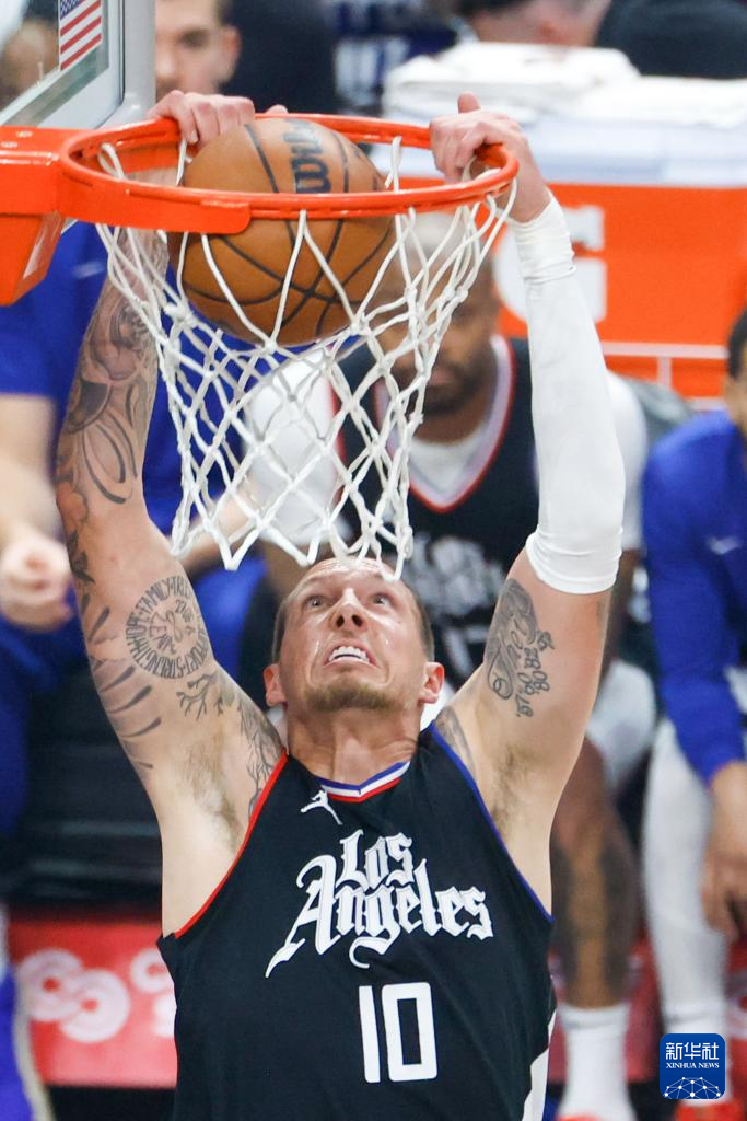 4月10日,快船队球员丹尼尔·泰斯在比赛中扣篮。新华社发(赵汉荣摄)