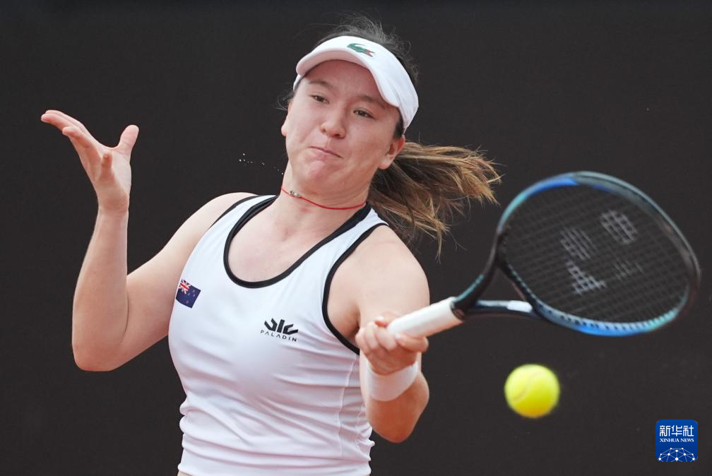 4月11日,新西兰队选手孙璐璐在单打比赛中回球。她0比2不敌中国队选手王曦雨。新华社记者 薛宇舸 摄