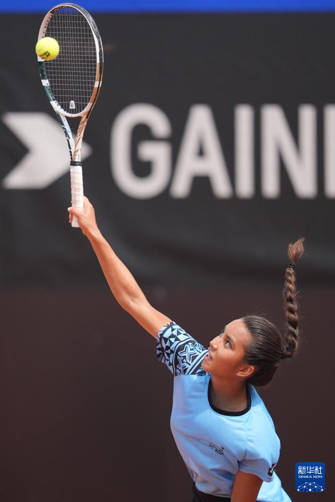 4月12日,中国队选手郭涵煜在单打比赛中发球。她2比0战胜太平洋大洋洲联队选手布西。新华社记者 薛宇舸 摄