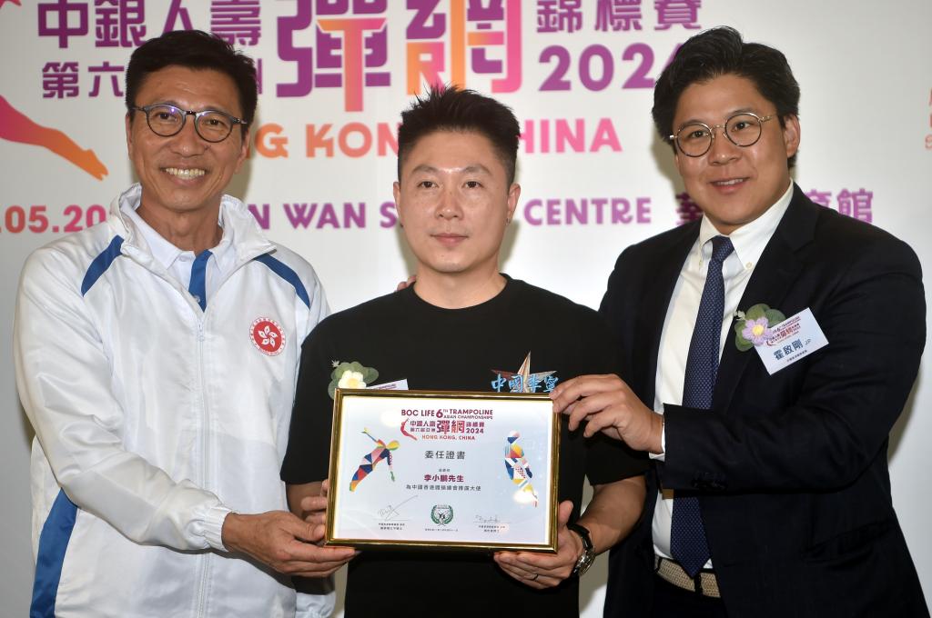 会上,中国体操奥运冠军李小鹏被委任为中国香港体操总会推广大使。他说:“作为一名体操运动员,蹦床在我们的训练当中是非常基础的一项。对我个人来说,这是我非常喜欢的一个项目。我从小就喜欢在上面空翻、转体。我希望通过这次赛事,给香港市民带来更多的机会,让大家踊跃地尝试一下。”