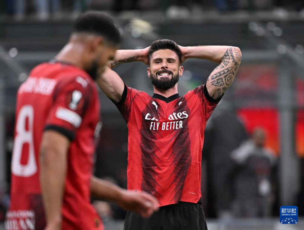4月11日,AC米兰队球员吉鲁在比赛中。新华社发(阿尔贝托·林格利亚摄)