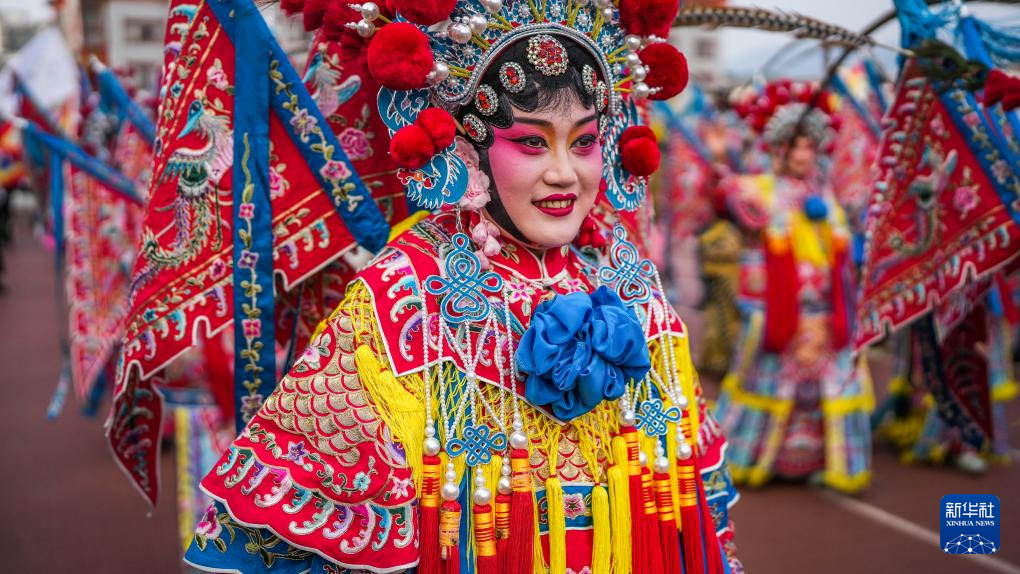 4月13日,上饶渣渣灰江西米粉足球队的助威团进入榕江县“村超”球场。新华社记者 陶亮 摄