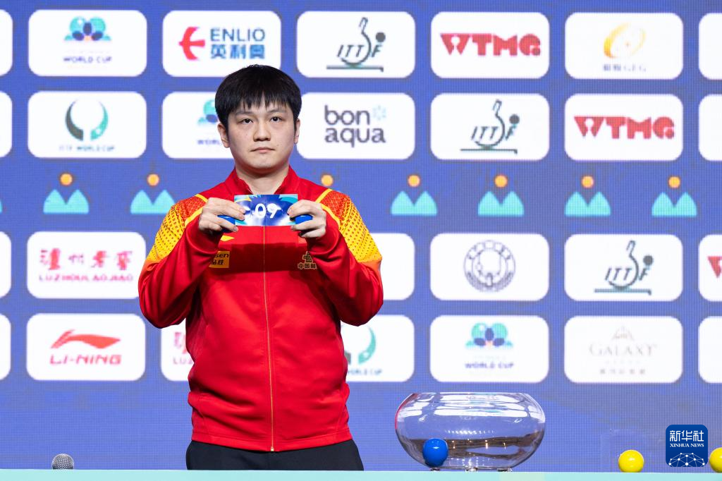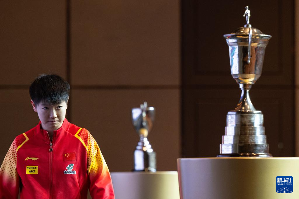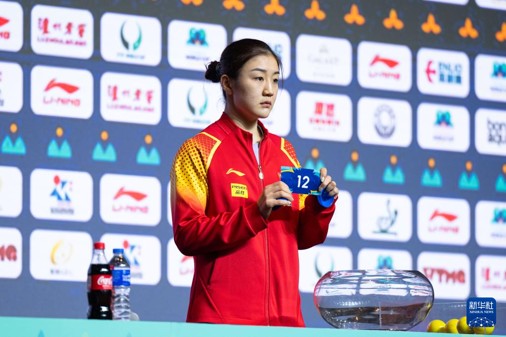 4月14日,中国选手孙颖莎在抽签仪式上。新华社记者 张金加 摄