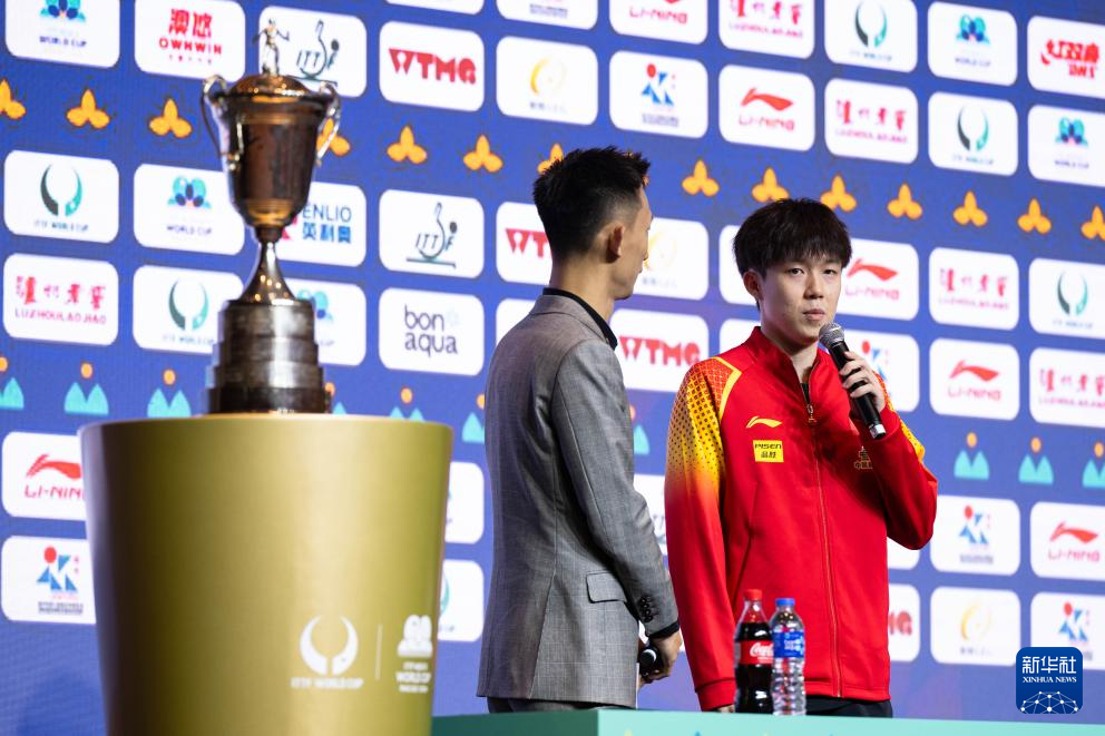 4月14日,中国选手王楚钦在抽签仪式上。新华社记者 张金加 摄