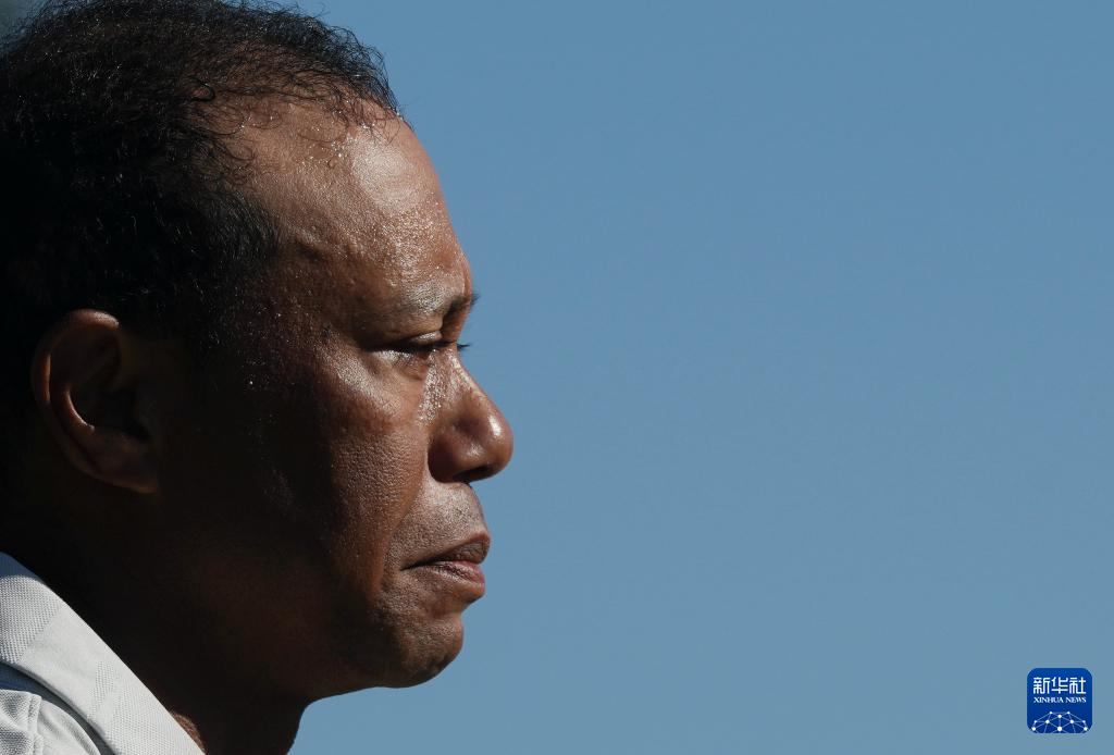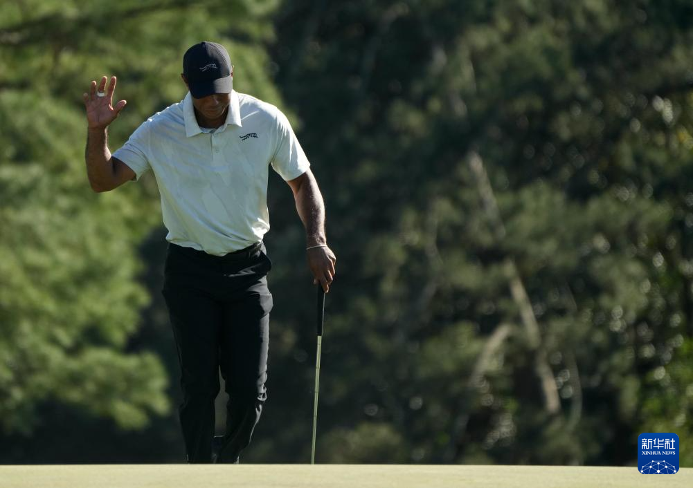 4月13日,美国选手泰格·伍兹在第三轮比赛中。新华社记者 吴晓凌 摄