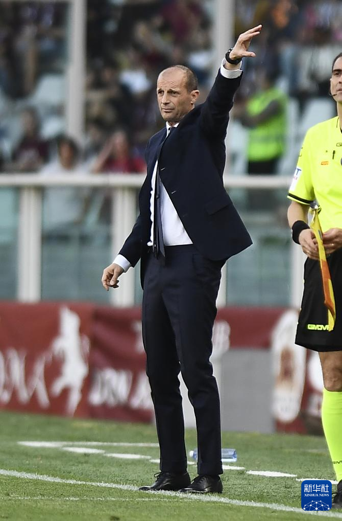 4月13日,尤文图斯队主教练阿莱格里在场边指挥。新华社发(费代里科·塔尔迪托摄)