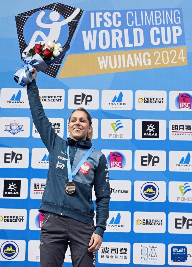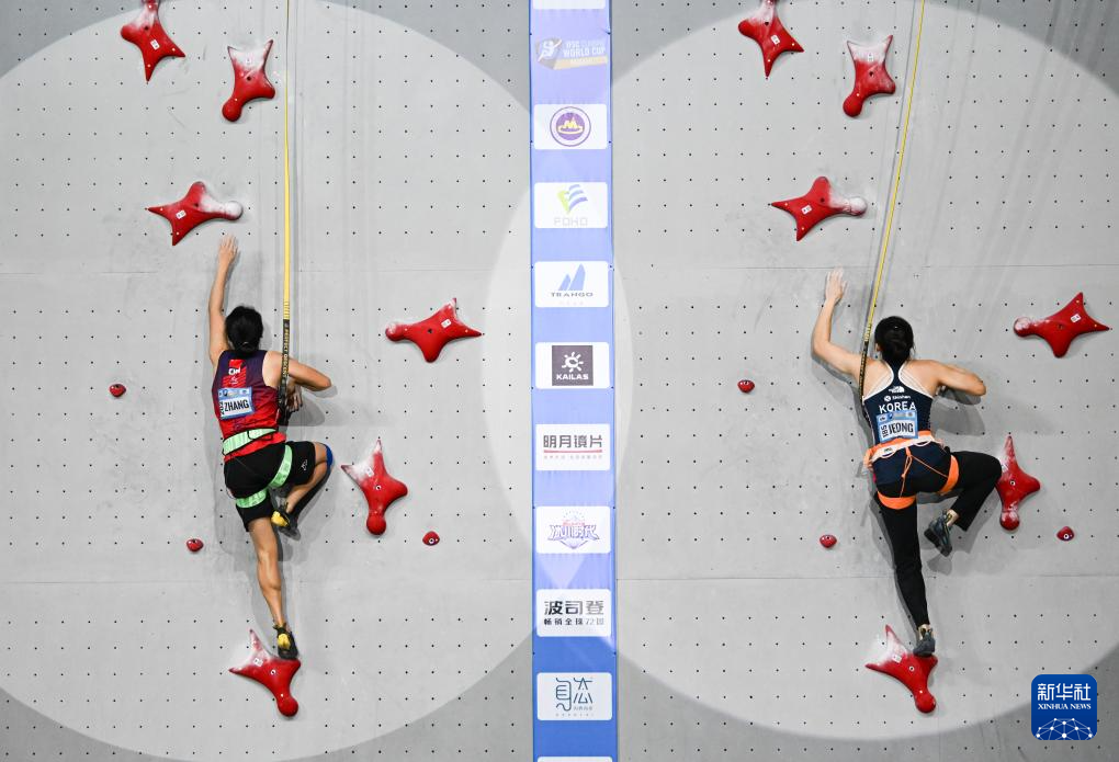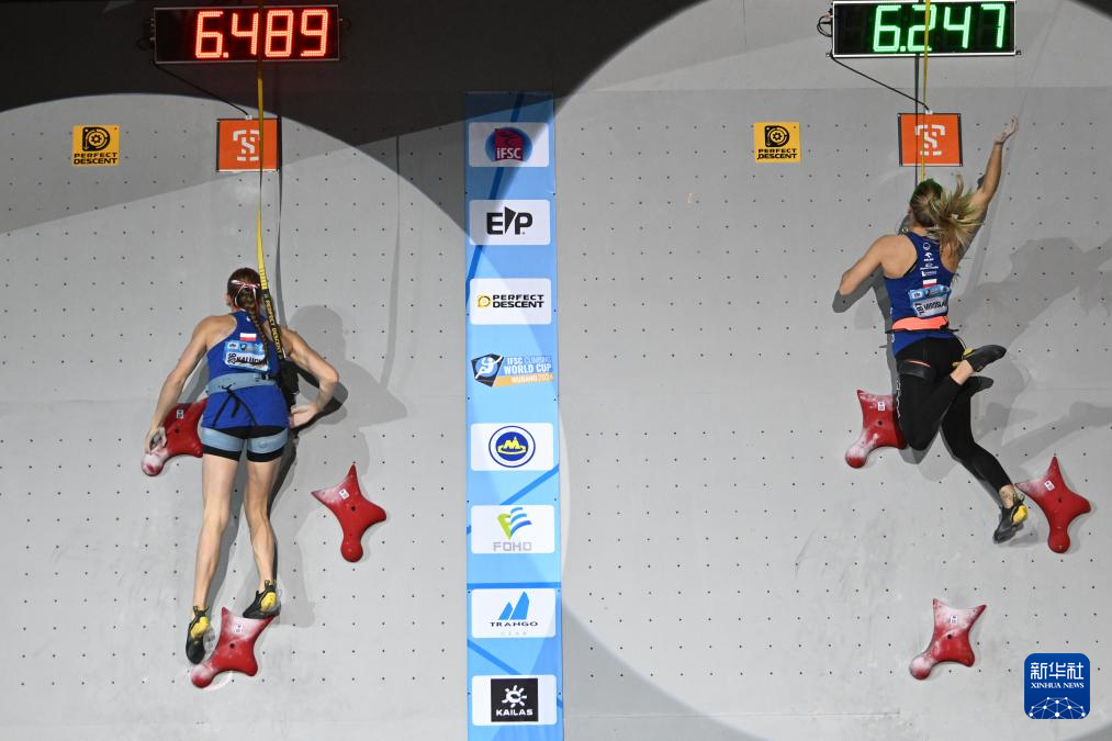 当日,2024年国际攀联攀岩世界杯(吴江站)女子速度赛在江苏吴江举行。