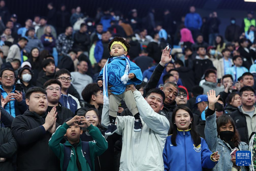 4月13日,大连英博队球迷在比赛后庆祝。新华社记者 潘昱龙 摄