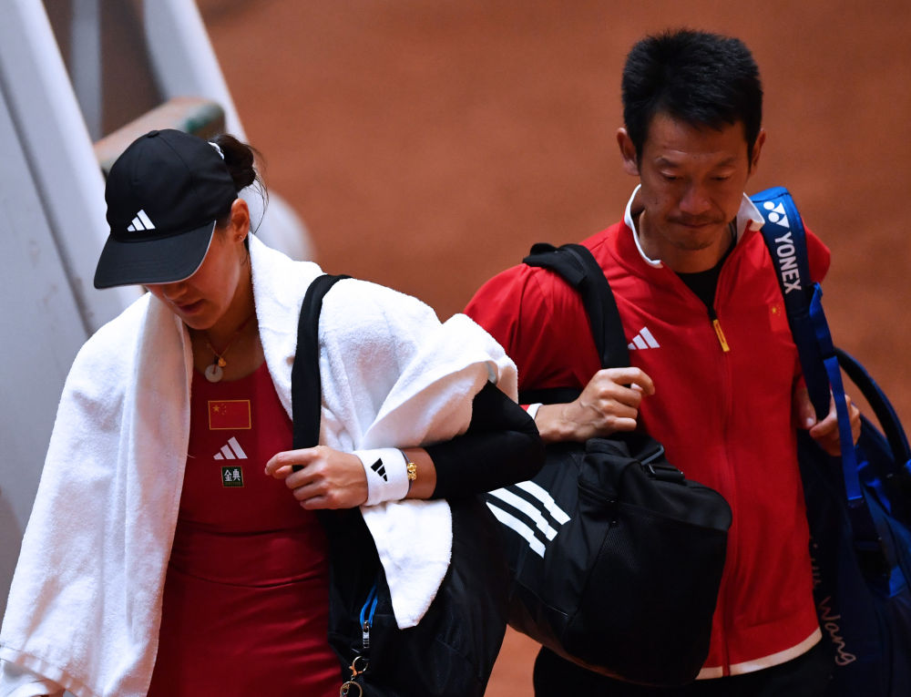 13日,中国队最后一战对阵韩国队,朱琳先下一城,王曦雨作为第二单打登场。随着比赛进行,王曦雨腿部出现不适。在以6:4拿下首盘后,她接受医疗处理,右侧大腿缠着绷带继续登场。