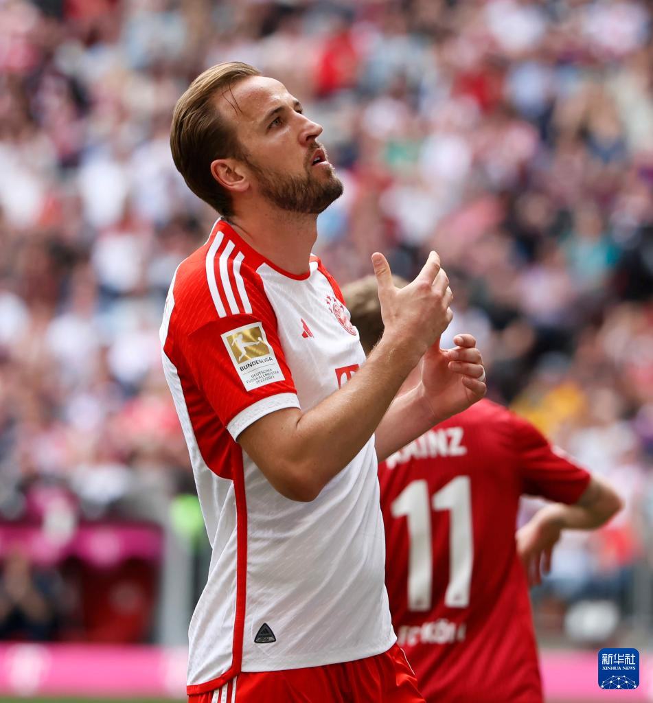 4月13日,拜仁慕尼黑队球员凯恩在错失进球机会后。新华社发(菲利普·鲁伊兹摄)