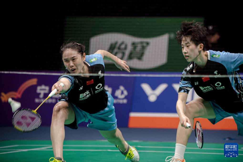 4月14日,张殊贤(右)/郑雨在比赛中。新华社记者 江汉 摄