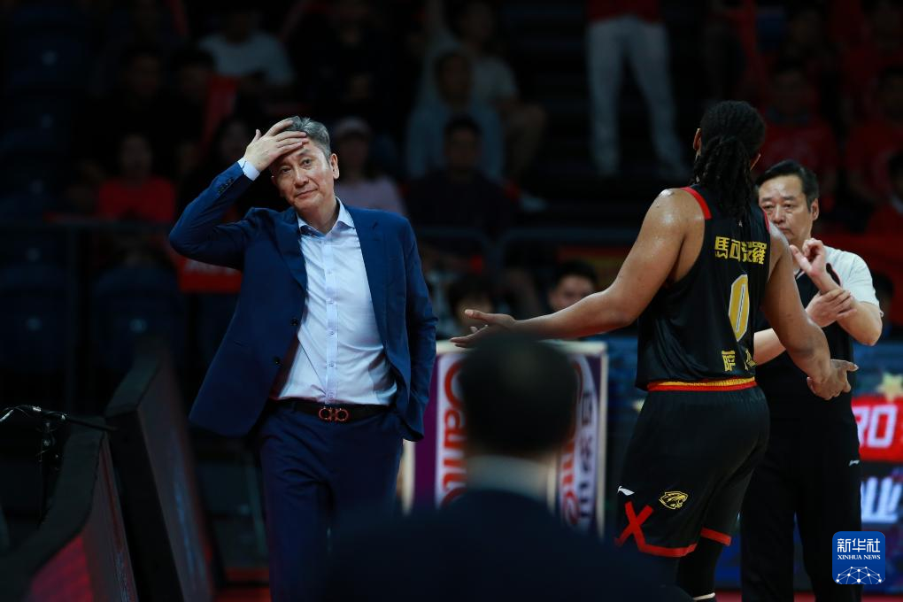 4月15日,深圳马可波罗队主教练郑永刚(左)在比赛中。新华社发(彭志刚摄)
