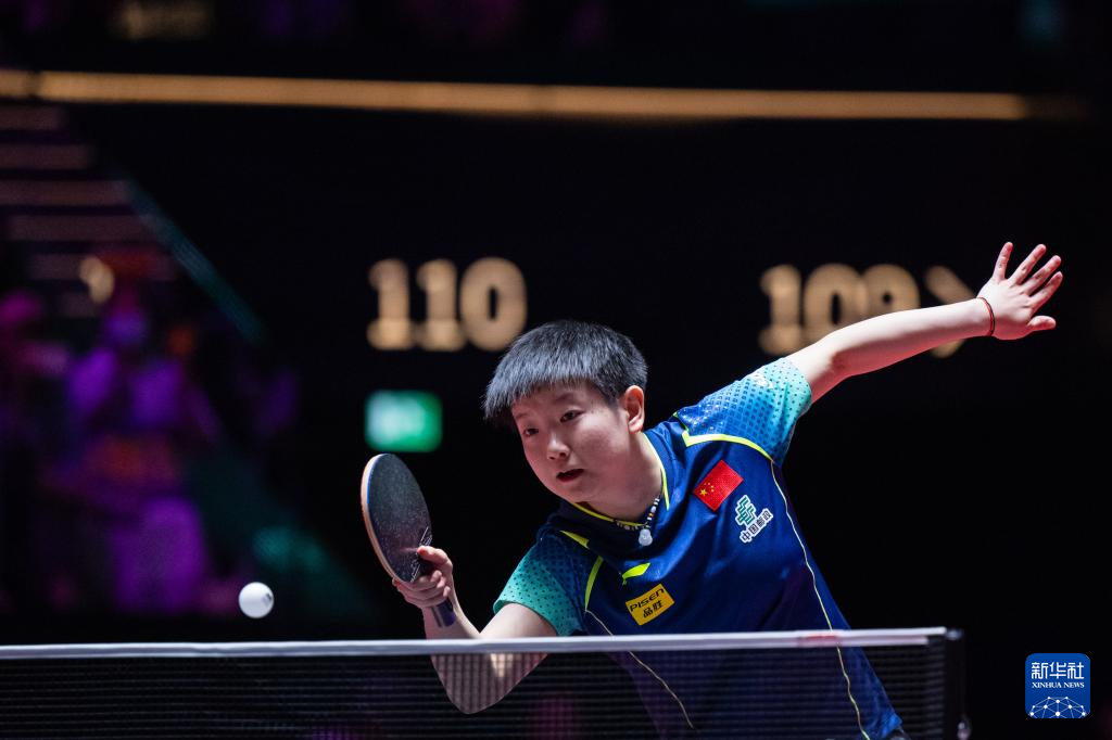 4月15日,孙颖莎在比赛中回球。新华社记者 张金加 摄