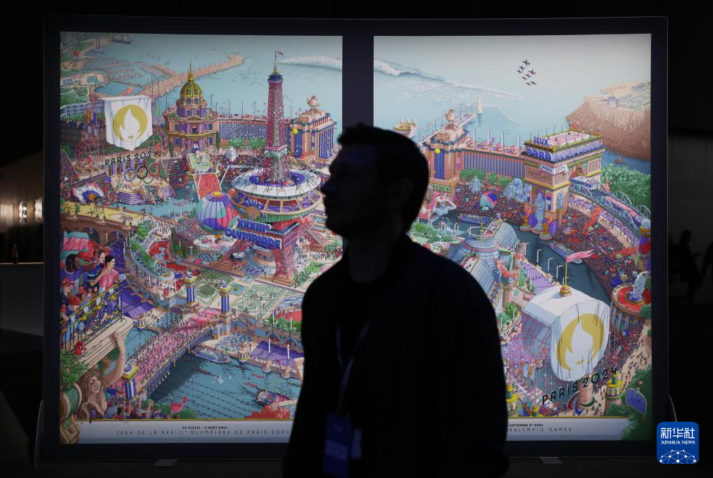 这是4月17日拍摄的庆祝活动上展示的巴黎奥运会和残奥会海报。新华社记者 高静 摄