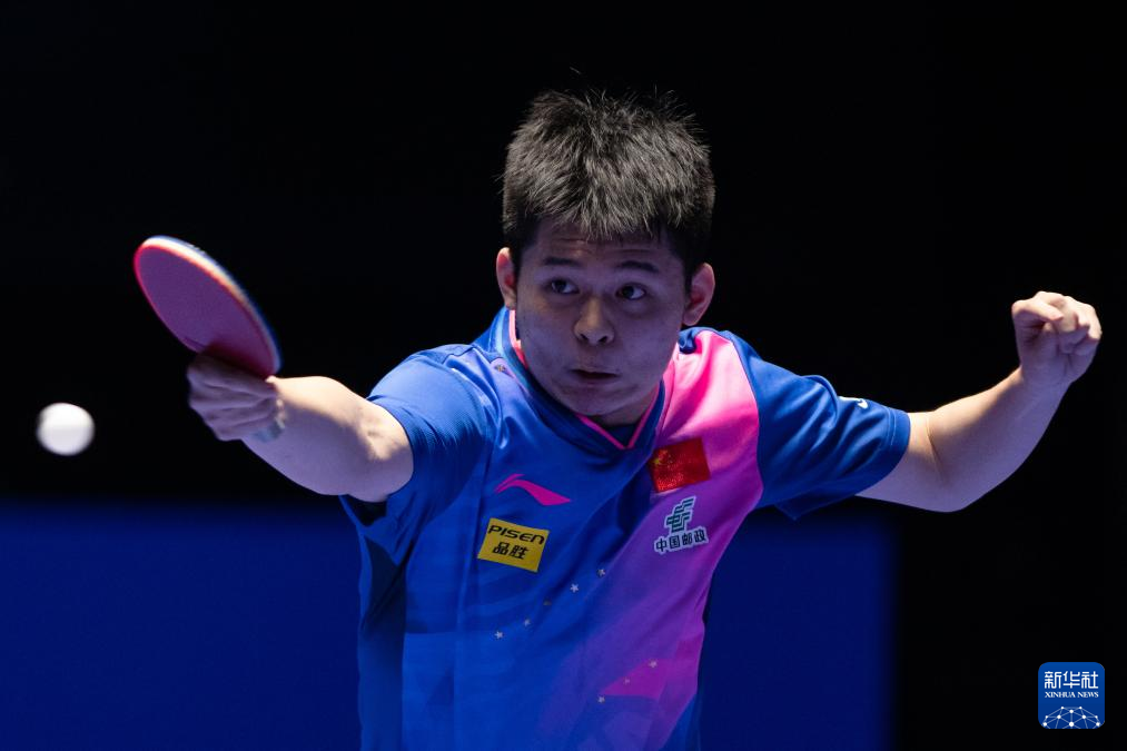 4月17日,林诗栋在比赛中回球。新华社记者 张金加 摄