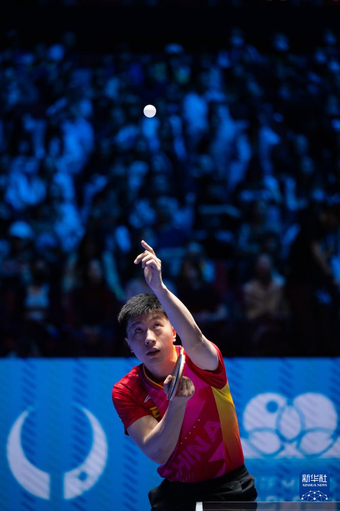 4月17日,马龙在比赛中回球。新华社记者 张金加 摄