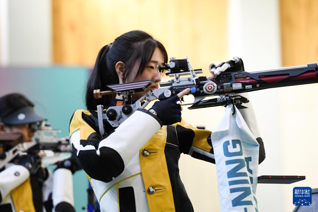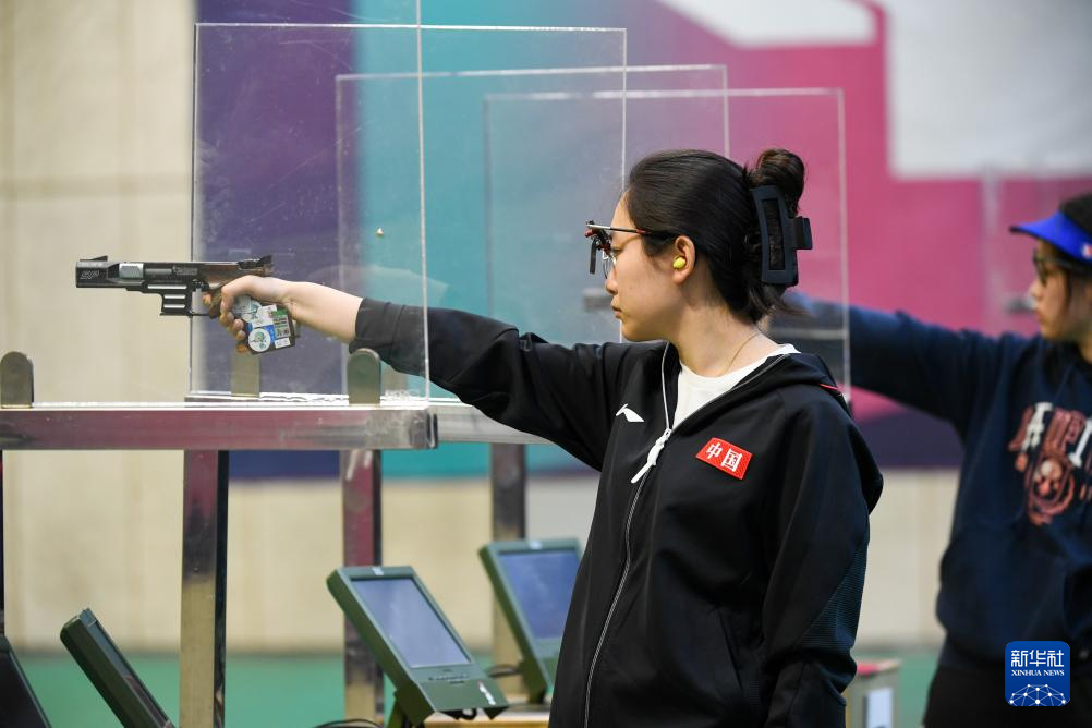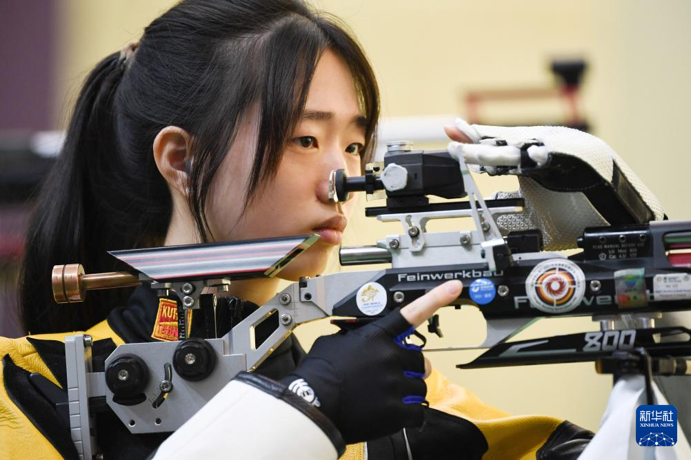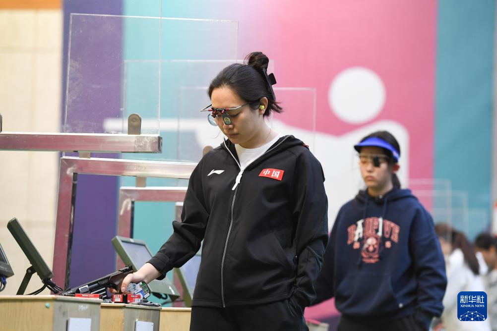 4月18日,黄雨婷在10米气步枪个人训练赛决赛中。新华社记者 鞠焕宗 摄