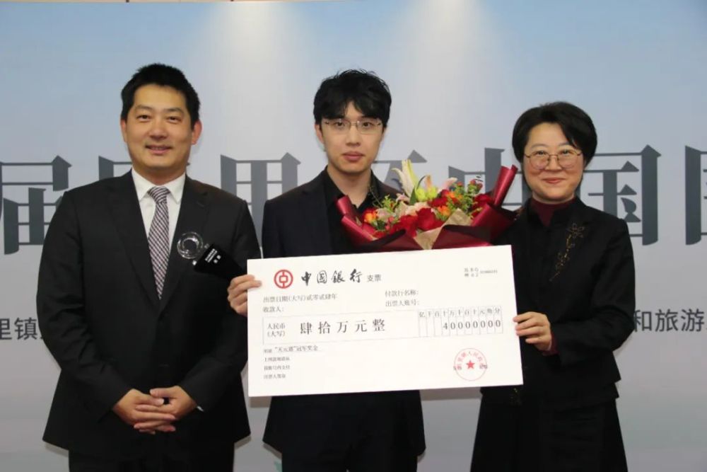 连笑(中)在颁奖仪式上。图片来自中国围棋协会