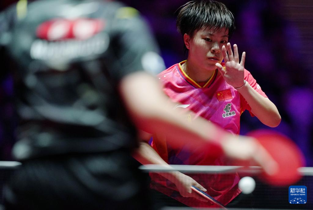 4月18日,日本选手张本美和在比赛中回球。新华社记者 王申 摄
