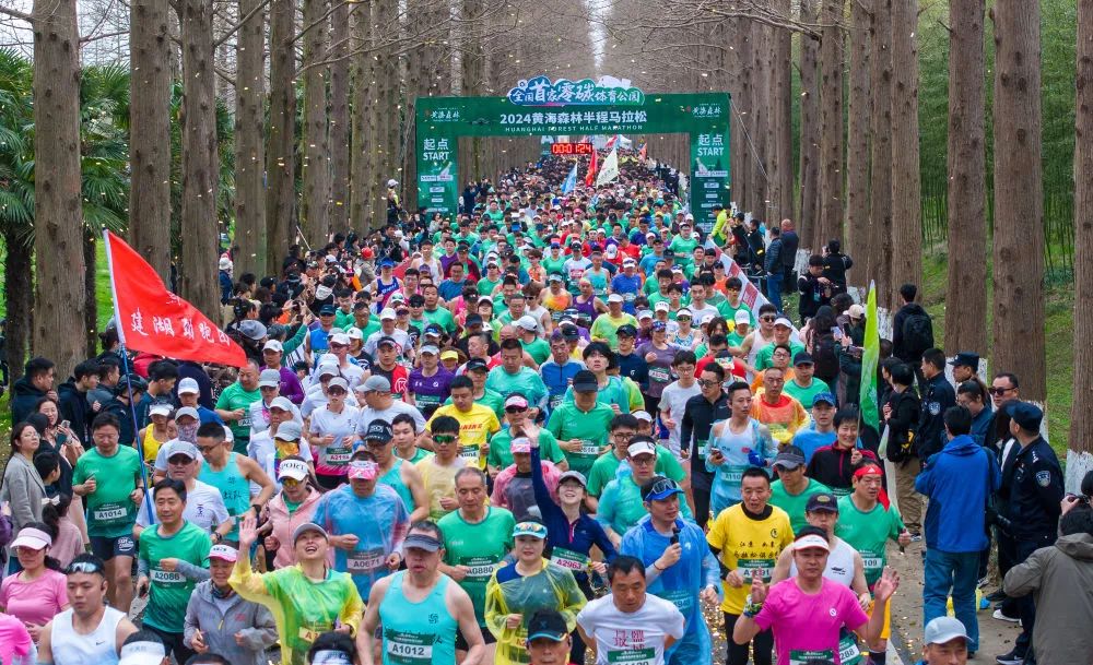 3月31日,2024黄海森林半程马拉松在江苏东台黄海国家森林公园举行。新华社发(孙家录摄)
