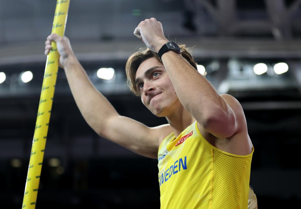 ↑3月3日,杜普兰蒂斯在2024年室内田径世锦赛男子撑杆跳高决赛中。新华社记者 李颖 摄