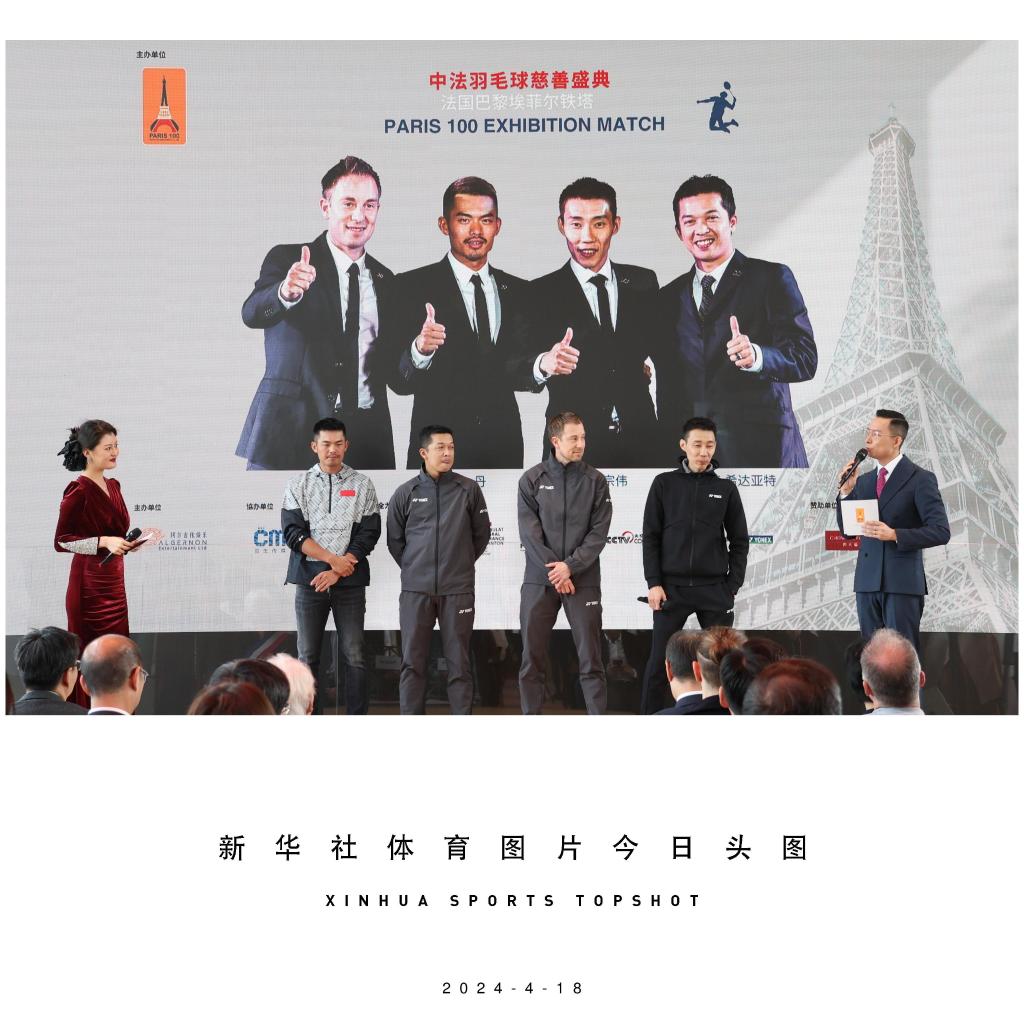 当日,在巴黎奥运会迎来倒计时100天之际,羽坛“四天王”林丹、陶菲克、李宗伟、盖德齐聚巴黎埃菲尔铁塔,参加“巴黎100中法羽毛球慈善盛典”活动。在此期间,四人将参加表演赛、慈善拍卖会等活动。