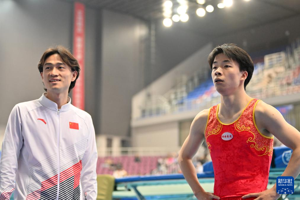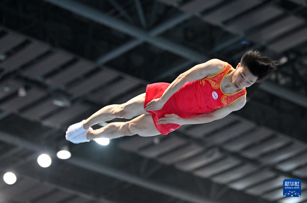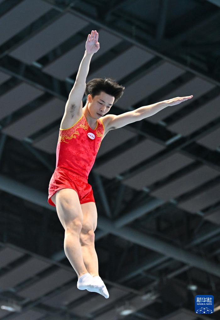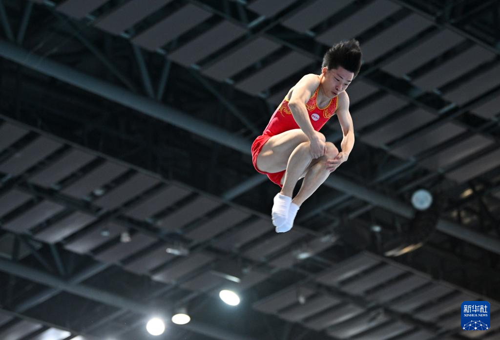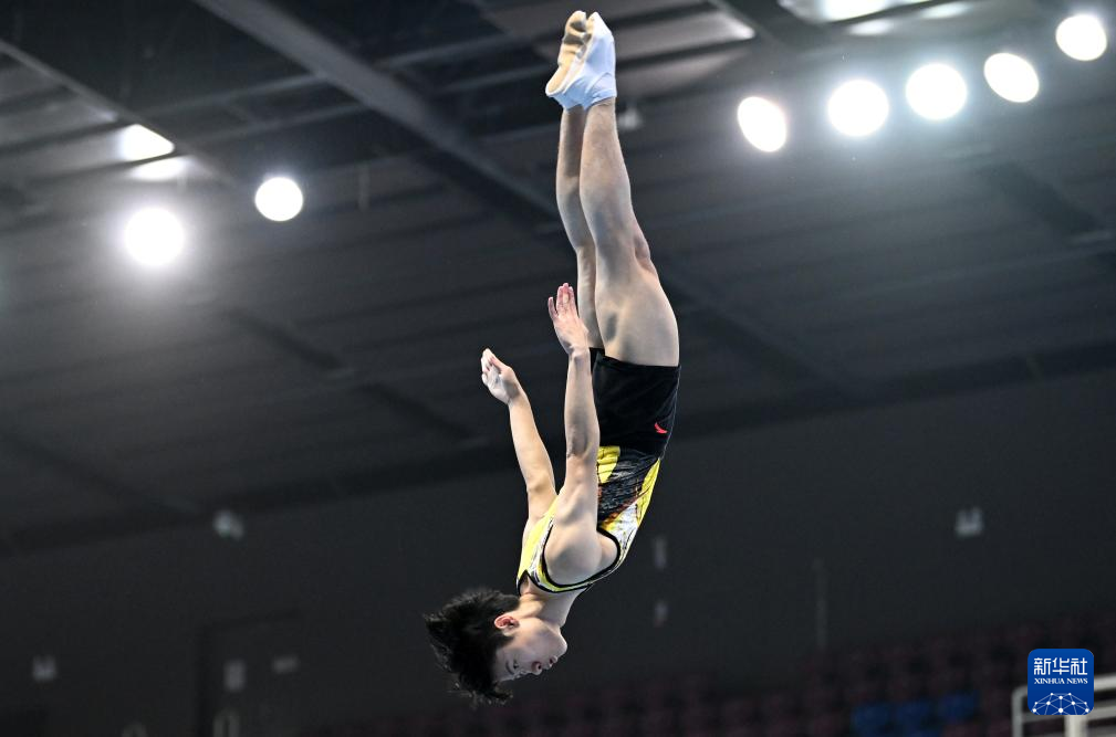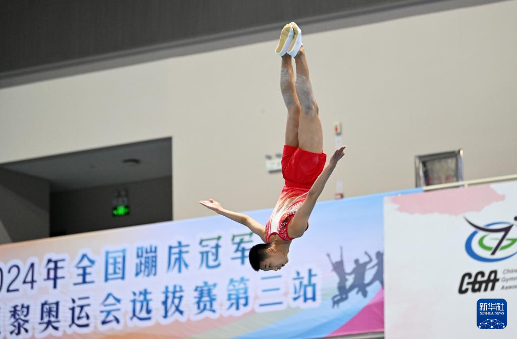 当日,2024年全国蹦床冠军赛暨巴黎奥运会选拔赛(第三站)男子网上个人半决赛在天津市滨海新区举行。