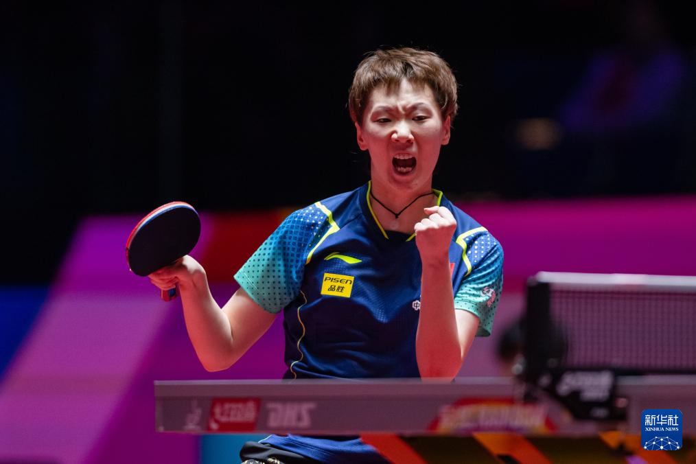 当日,在2024年澳门国际乒联女子世界杯八分之一决赛中,中国选手王曼昱4比1战胜罗马尼亚选手伯纳黛特·斯佐科斯,晋级八强。