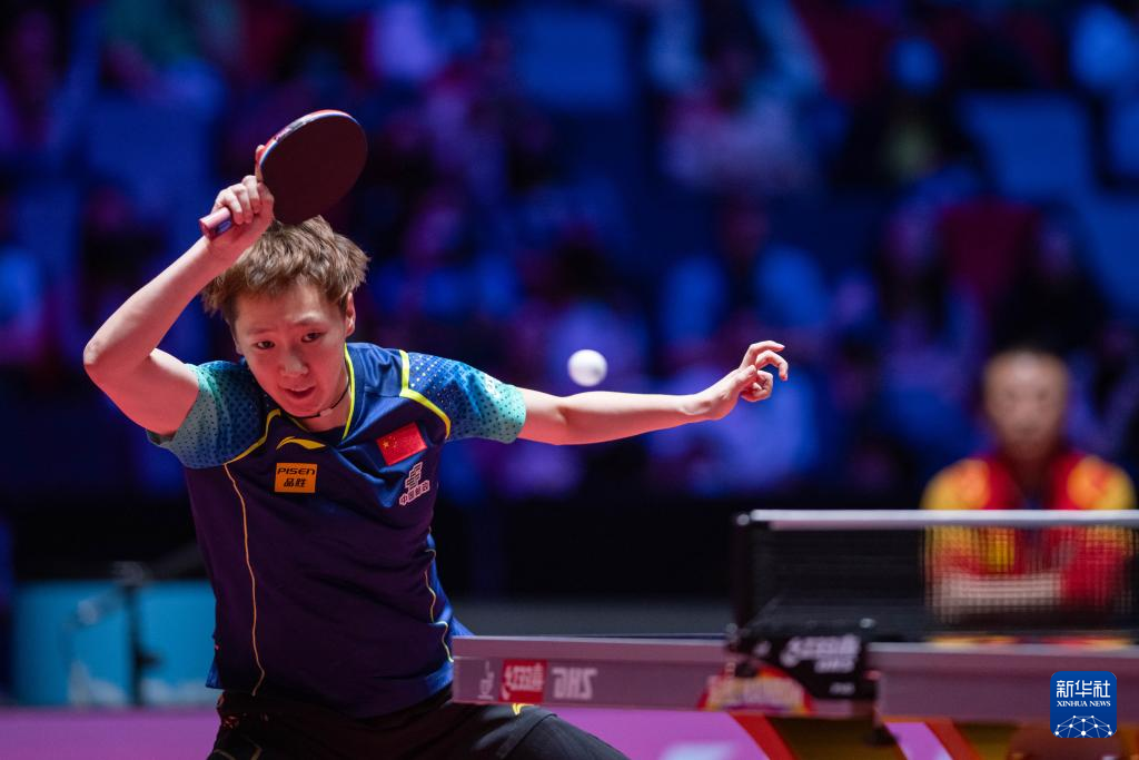 4月18日,王曼昱在比赛中回球。新华社记者 张金加 摄