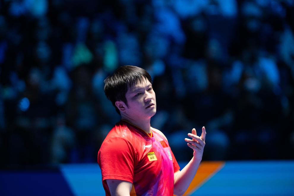 4月19日,樊振东在比赛中。新华社记者 张金加 摄