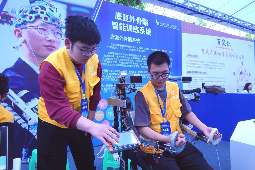 重庆邮电大学科研团队还展示了一个智能康复外骨骼系统,可帮助外伤、脑卒中等患者的肢体恢复运动功能。作为多学科交叉的创新成果,它融合了机械设计、康复医学、智能传感与控制、人机交互和信息技术等诸多领域的先进技术。
