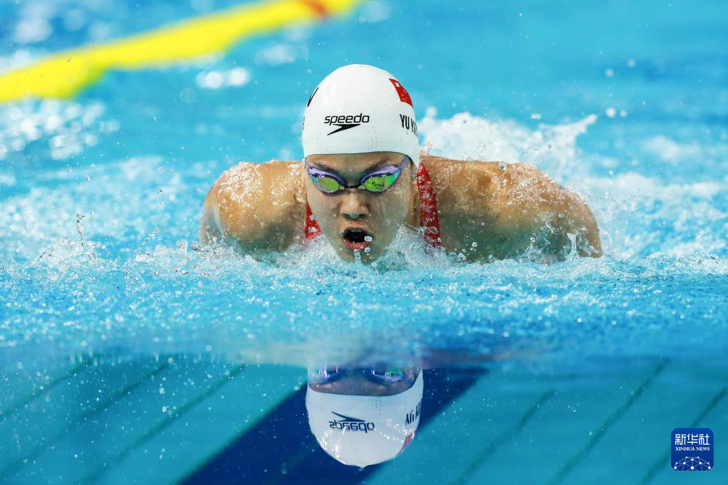 4月19日,浙江寿仙谷队选手余依婷在女子100米蝶泳半决赛中。新华社发(彭志刚摄)