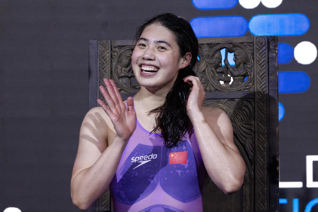 女子400米自由泳决赛,李冰洁以4分04秒03夺冠,柳雅欣获得亚军,杨佩琪获得第三。