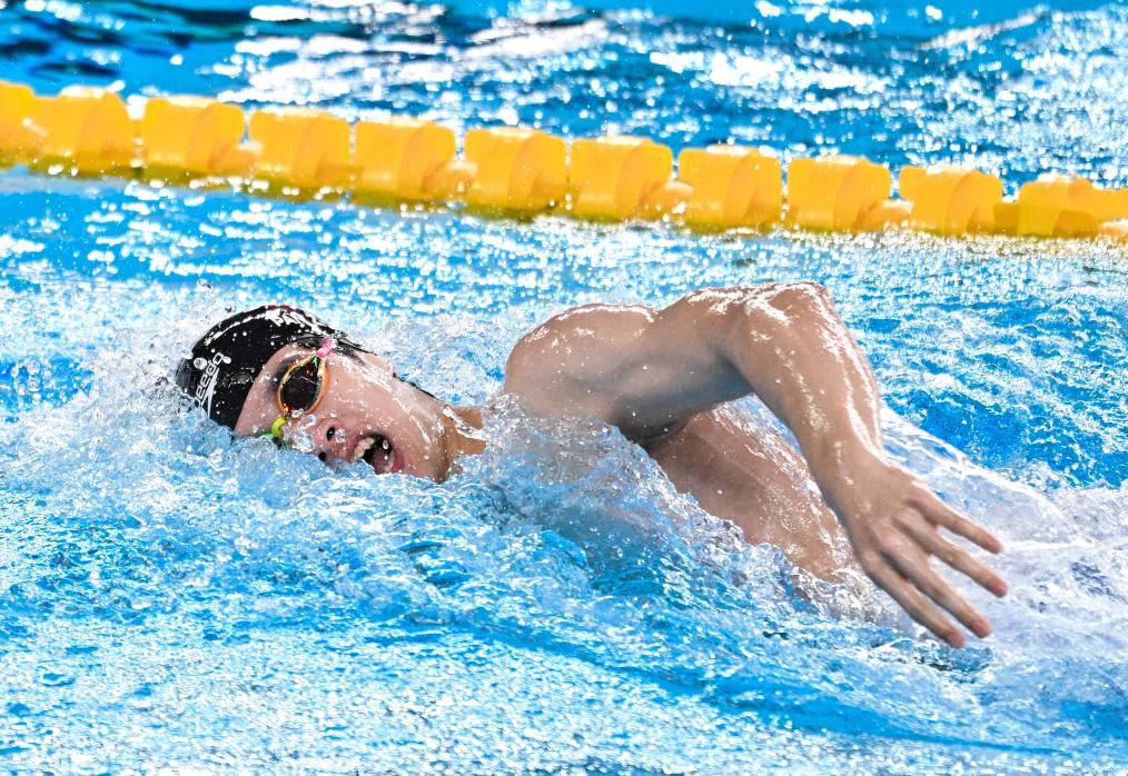 男子400米自由泳决赛争夺十分激烈,前三名选手的差距都在毫厘之间,潘展乐在最后50米展现了极强的爆发力,以3分45秒58夺得冠军,张展硕屈居第二,费立纬名列第三。