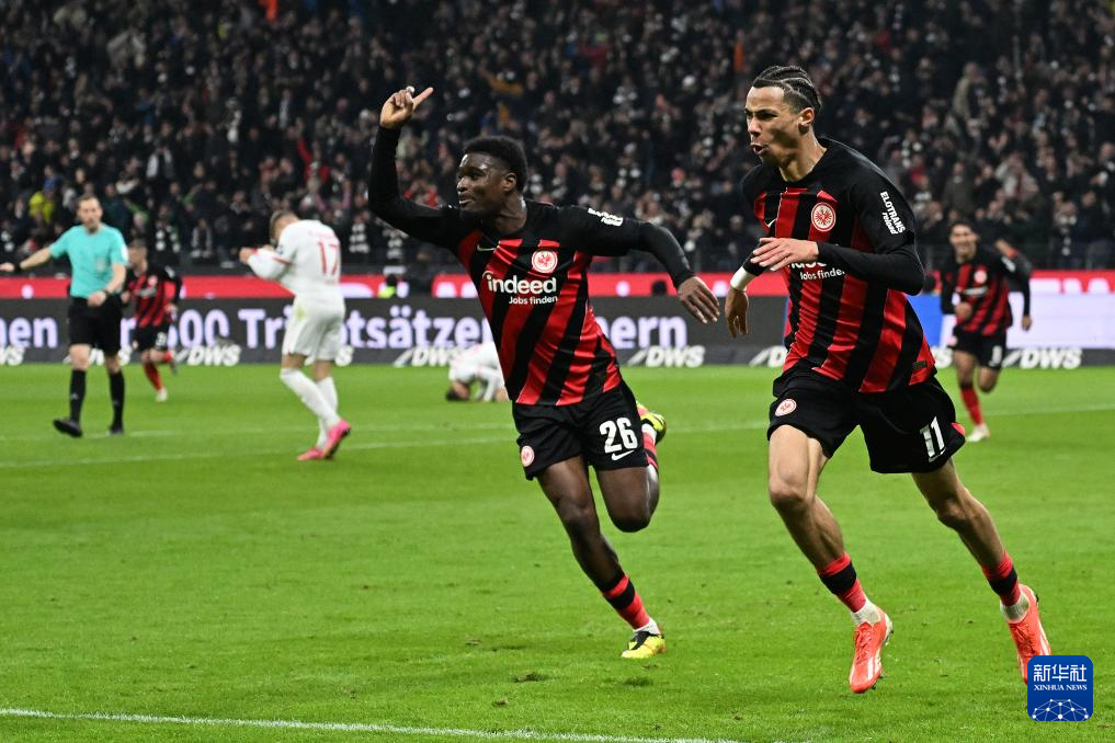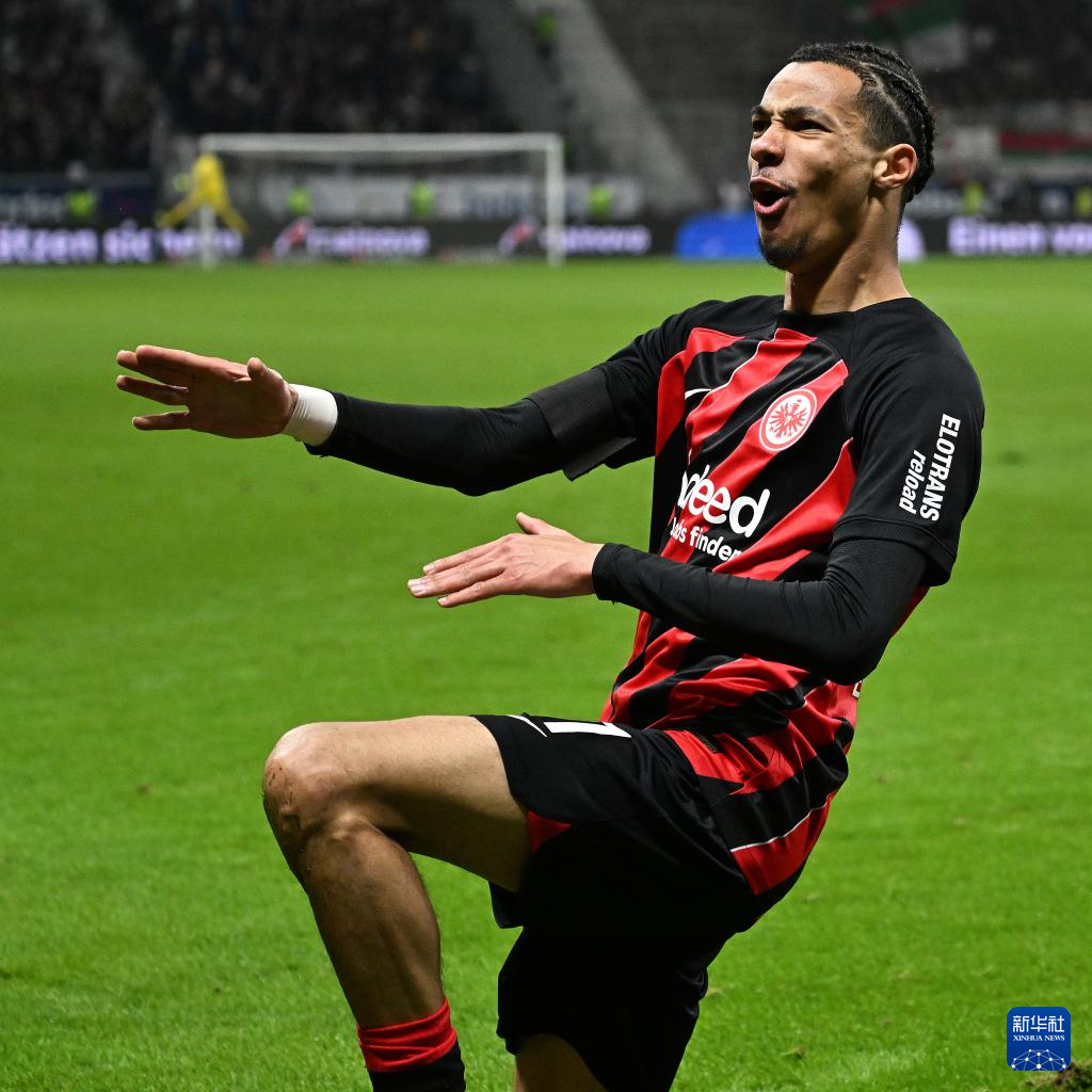 4月19日,法兰克福队球员埃基蒂克进球后庆祝。新华社发(乌尔里希·胡夫纳格尔摄)
