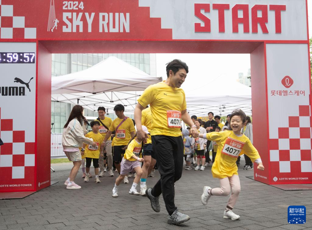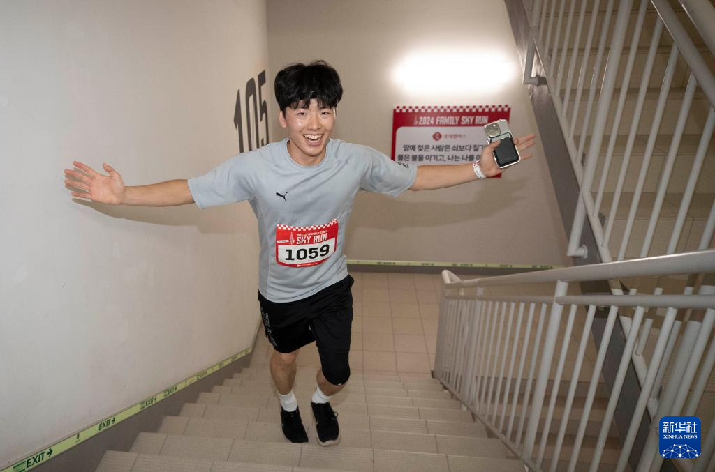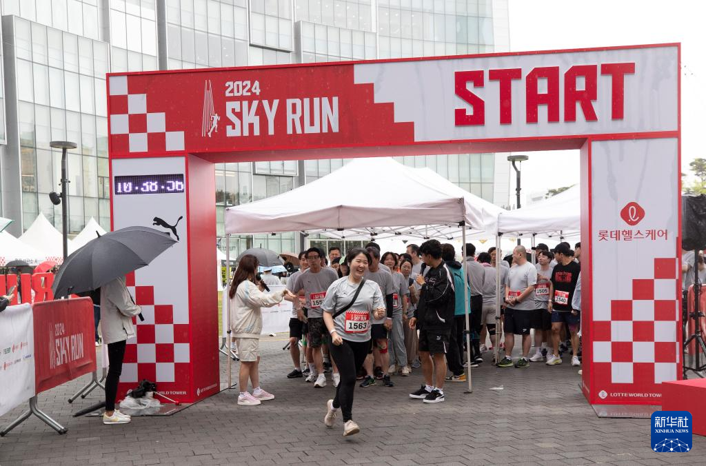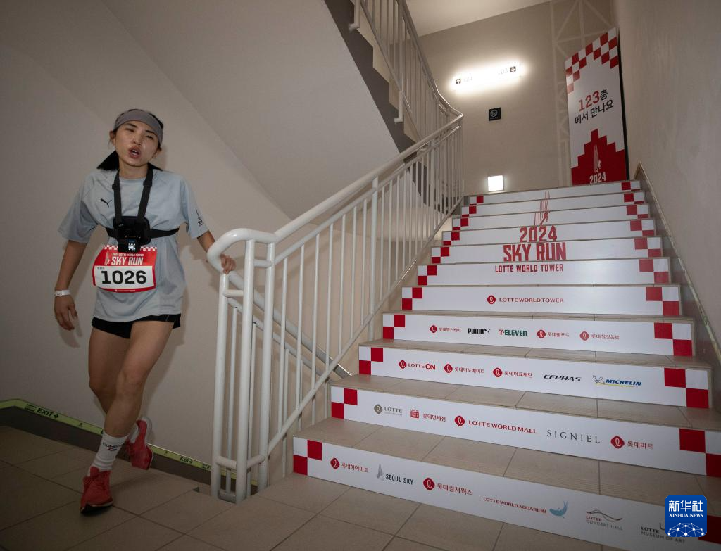 当日,2024乐天世界塔垂直马拉松比赛在韩国首尔举行。2200多名参赛选手需要从乐天世界塔1层攀登至123层,共计2917级台阶。