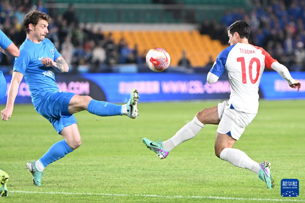 4月20日,上海申花队球员特谢拉(右)在比赛中。