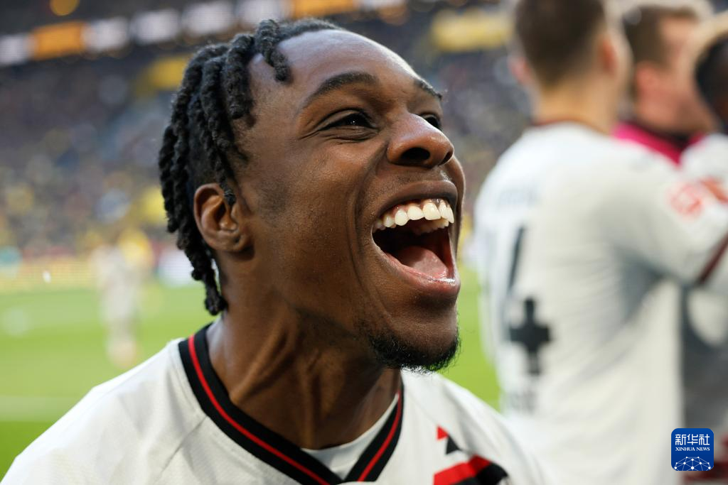 4月21日,多特蒙德队球员菲尔克鲁格进球后庆祝。新华社发(约阿希姆·毕瓦勒兹摄)