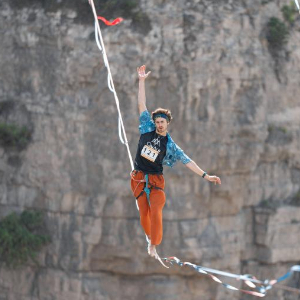 本悟空静静地坐在宽度不足两指的扁带上,此处距离地面有170多米,但这位法国选手仍能把注意力集中在呼吸和眼前的扁带上。峡谷里风很大,他的金色长发和标志性“战服”随风而动,看上去十分飘逸。