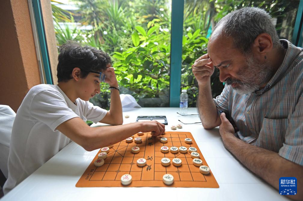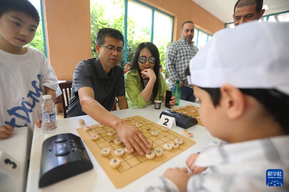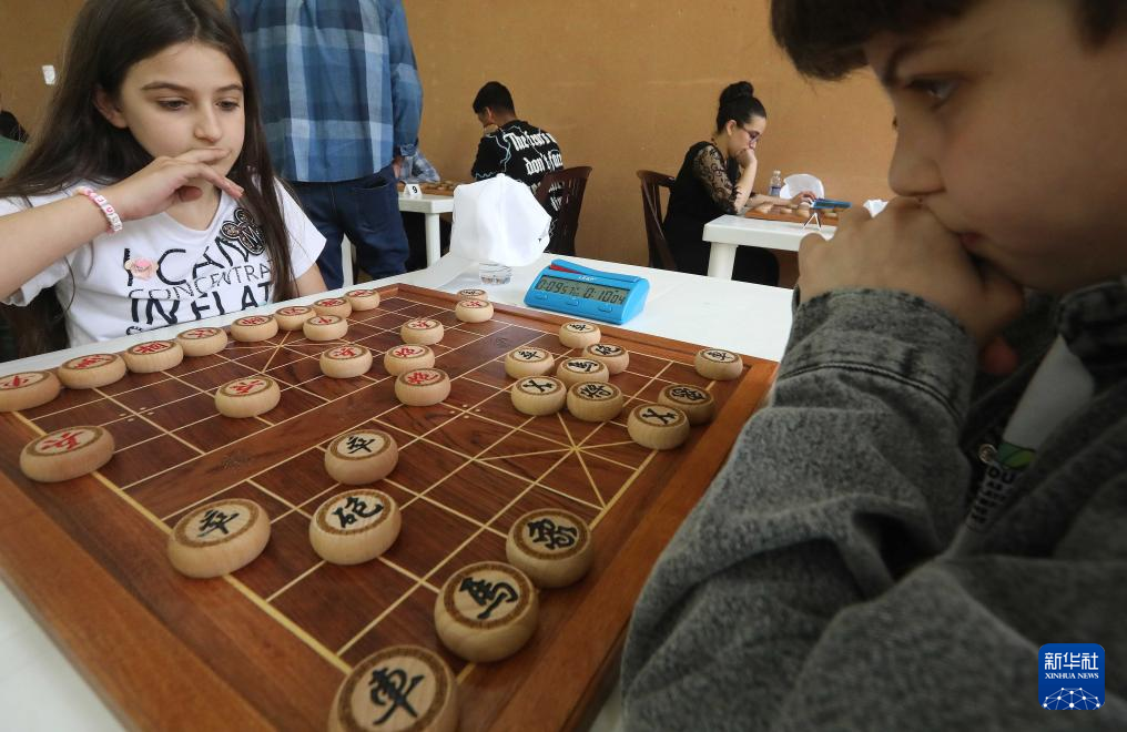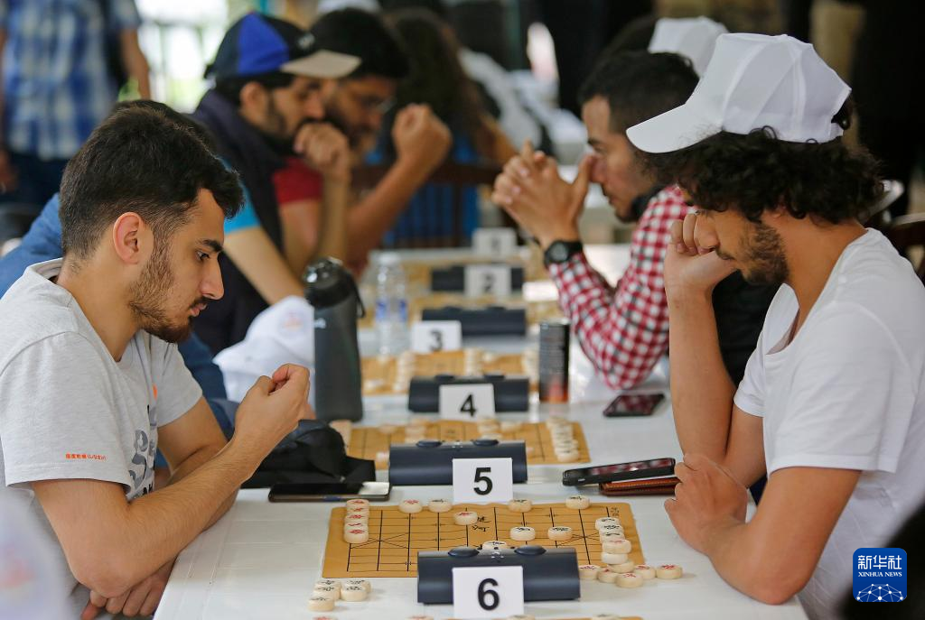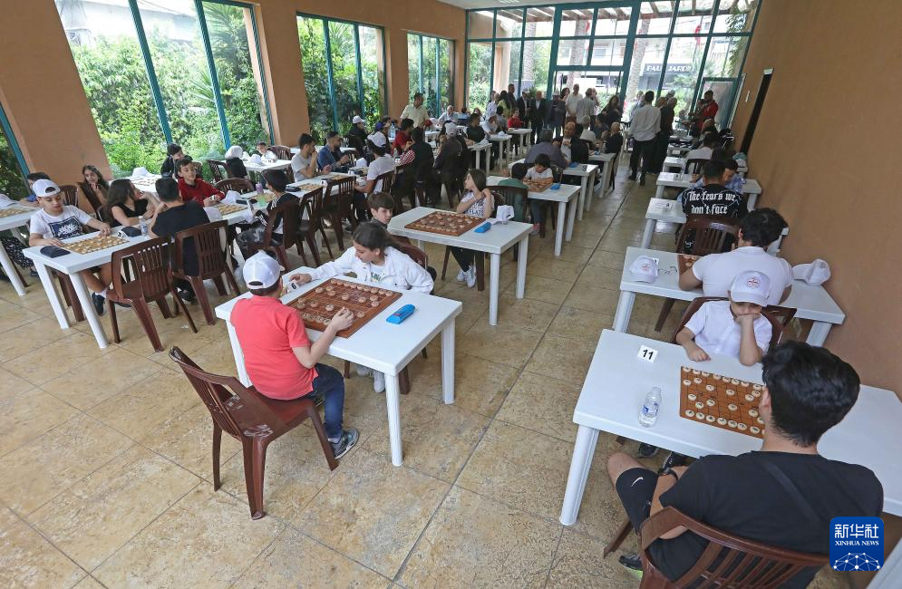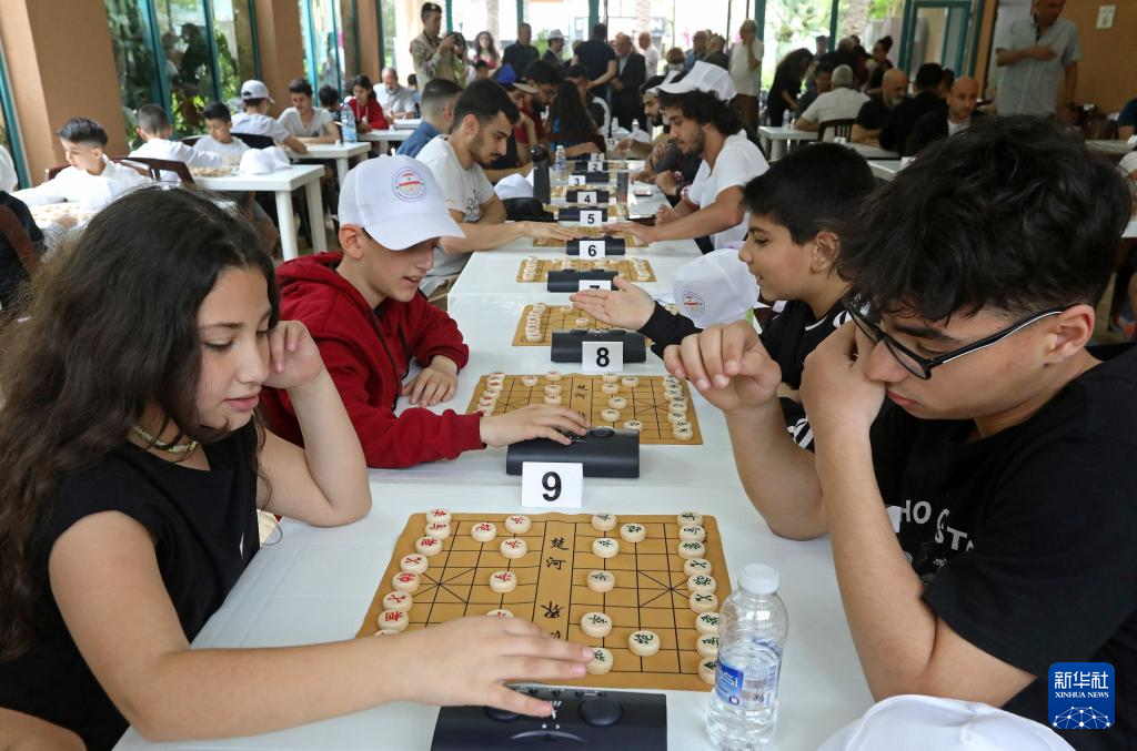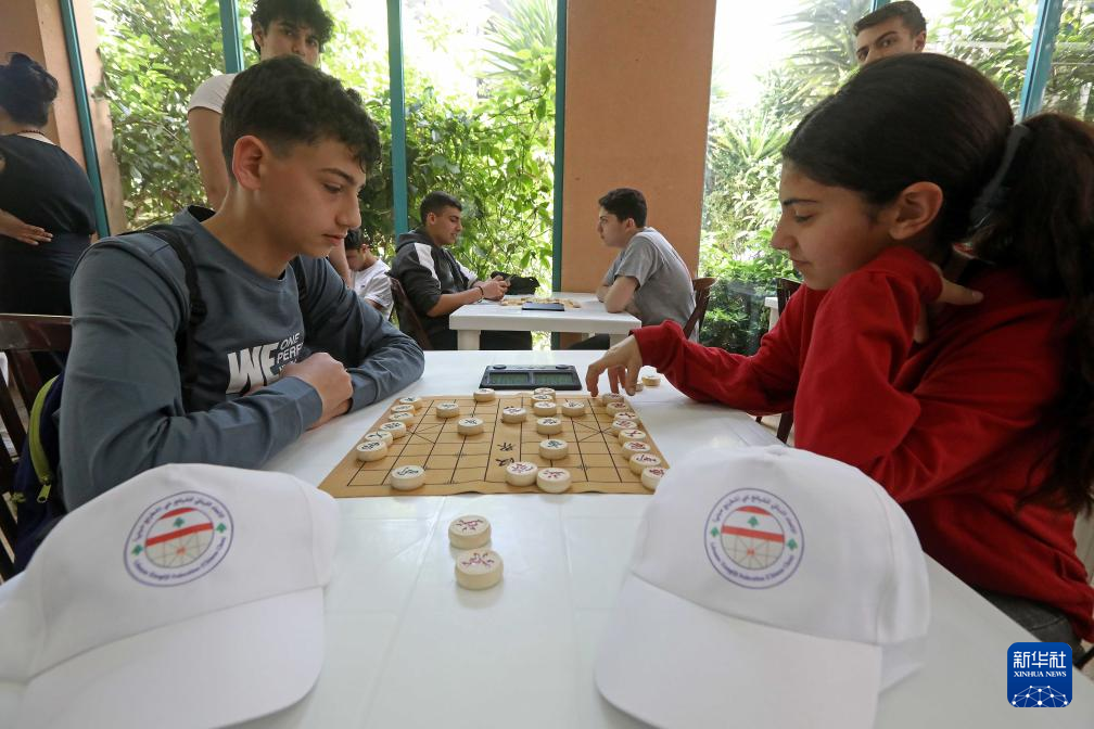 4月21日,在黎巴嫩贾勒迪卜,人们参加中国象棋比赛。新华社发(比拉尔·贾维希摄)