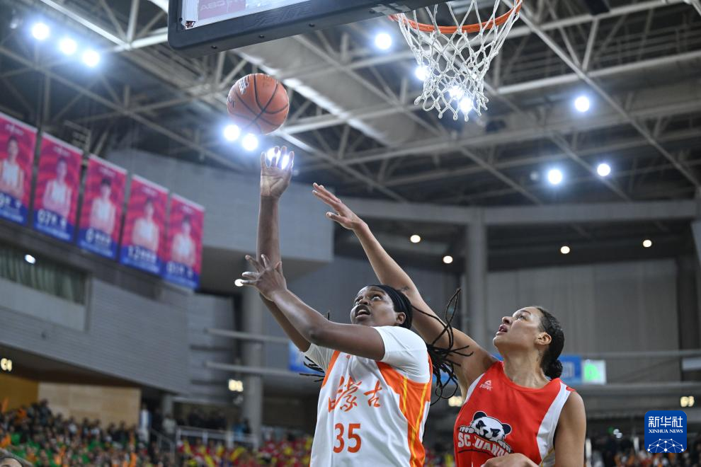 4月22日,四川远达美乐队球员坎贝奇在比赛中上篮。新华社记者 连振 摄