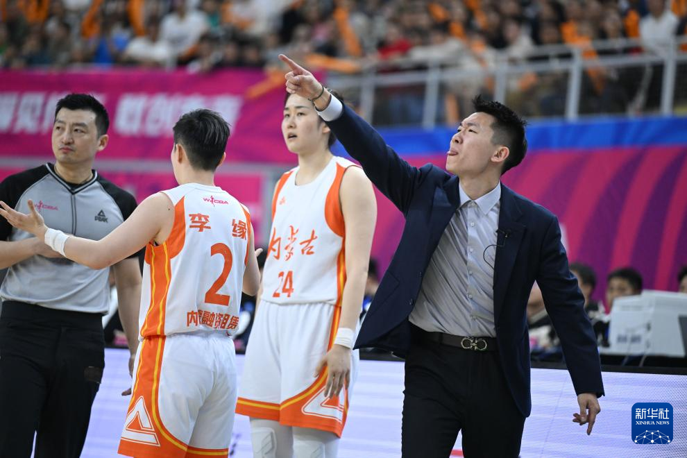 4月22日,内蒙古农信队教练杨赞(右)在球员被判罚后。新华社记者 连振 摄