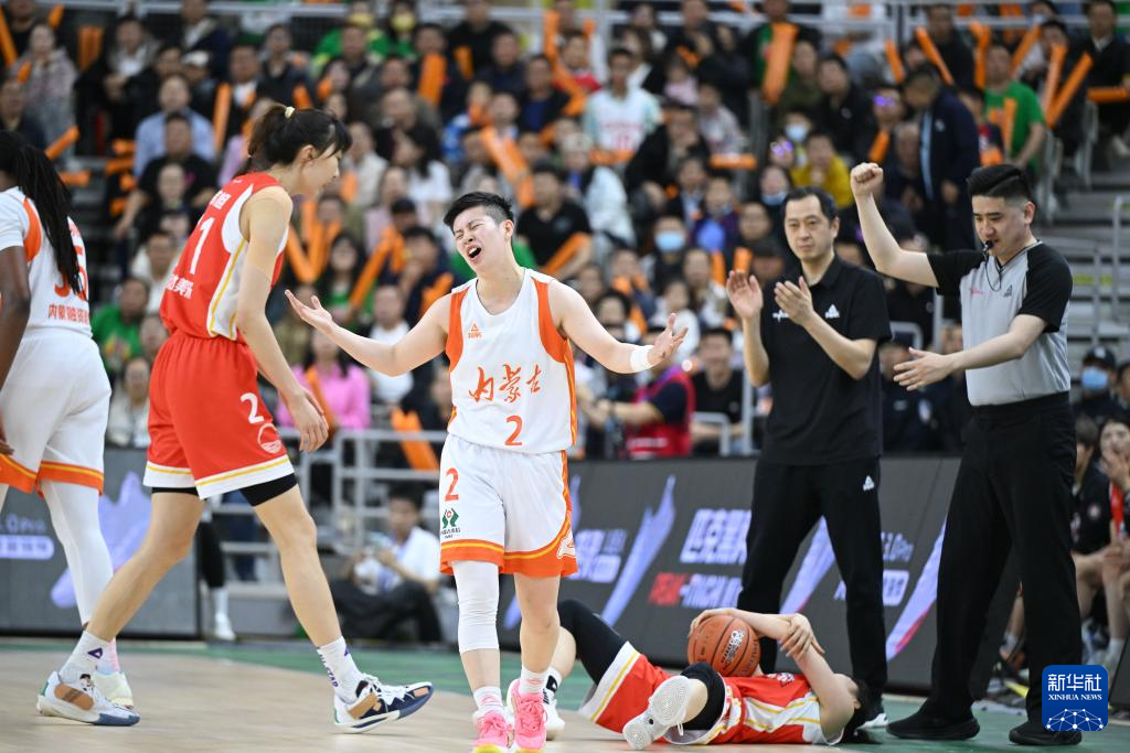 4月22日,内蒙古农信队球员李缘(左三)在被判罚后。新华社记者 连振 摄
