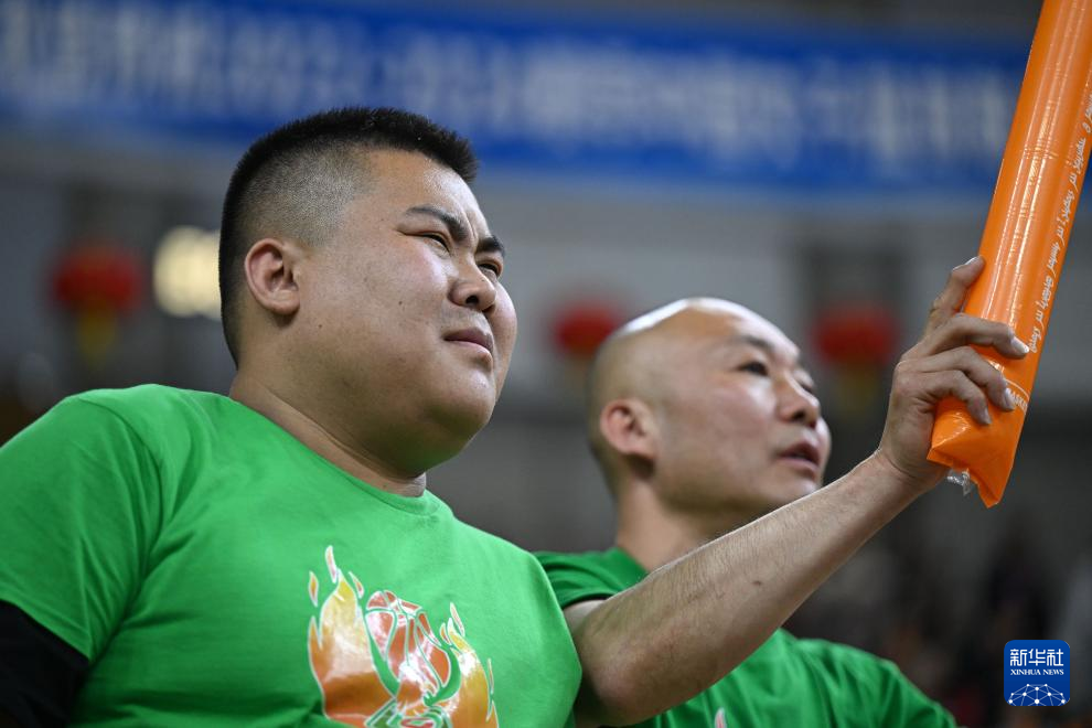 4月22日,四川远达美乐队球员韩旭(前右)在颁奖仪式上。新华社记者 连振 摄