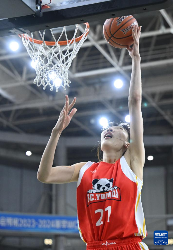 4月22日,四川远达美乐队球员韩旭在比赛中上篮。新华社记者 连振 摄