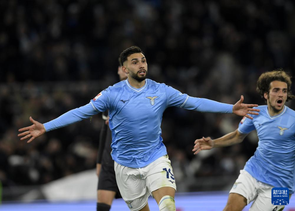 4月23日,拉齐奥队球员卡斯特利亚诺斯庆祝第二粒进球。新华社发(阿尔贝托·林格利亚摄)