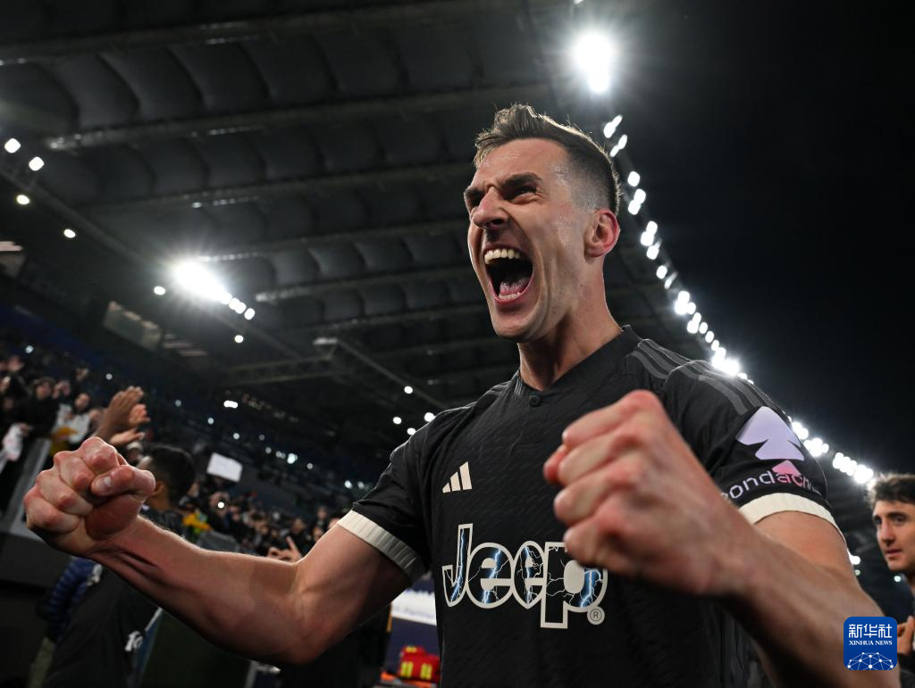 4月23日,尤文图斯队球员米利克在赛后庆祝。新华社发(阿尔贝托·林格利亚摄)