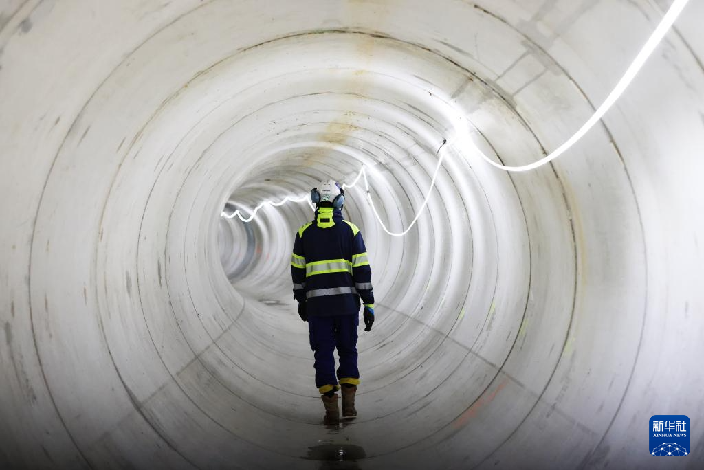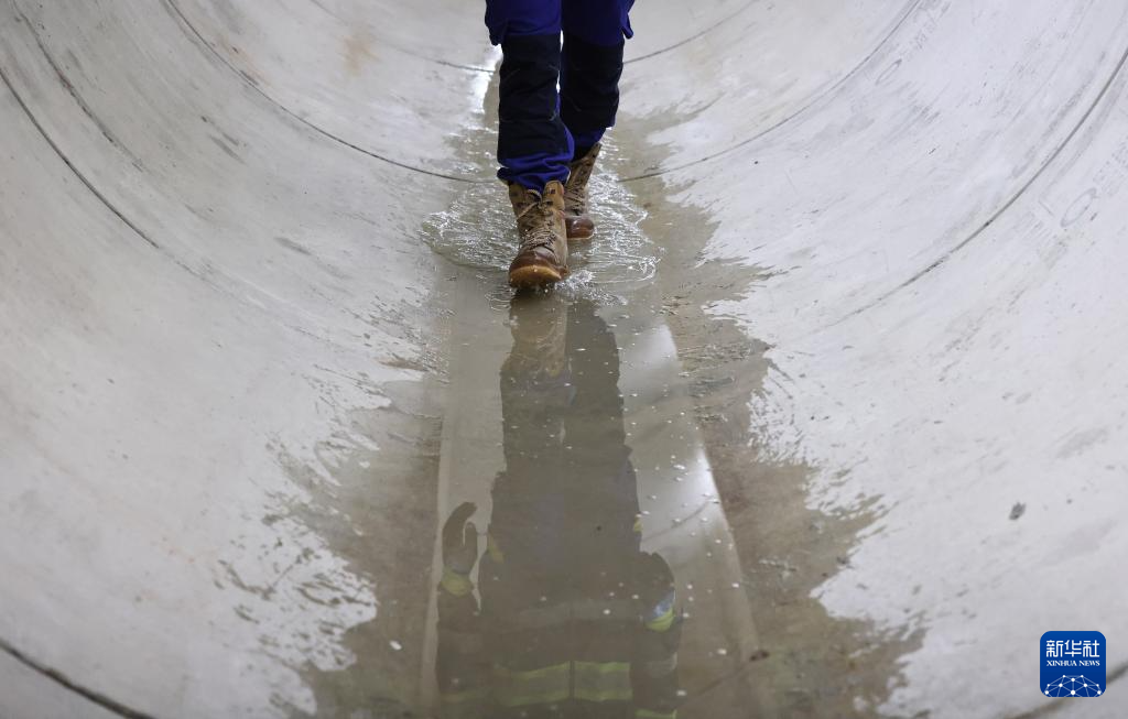 4月25日,工作人员在法国巴黎奥斯特利茨火车站附近的储水库输水管道内工作。新华社记者 高静 摄